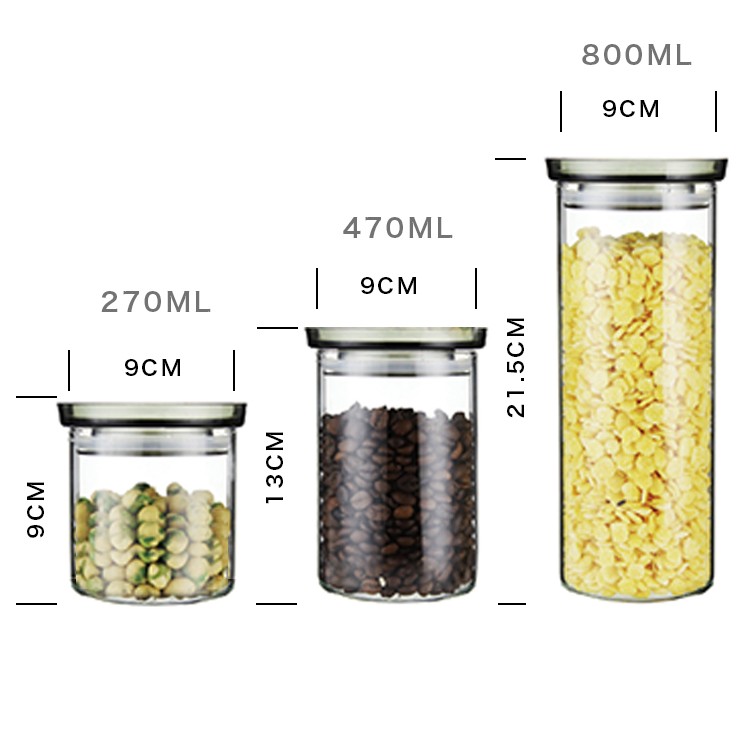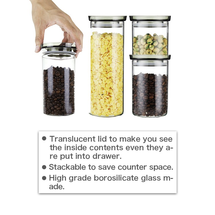 Slim 3 Pcs Kitchen Borosilicate Stackable Glass Jar With Silicon Seal Best Selling Storage Container |