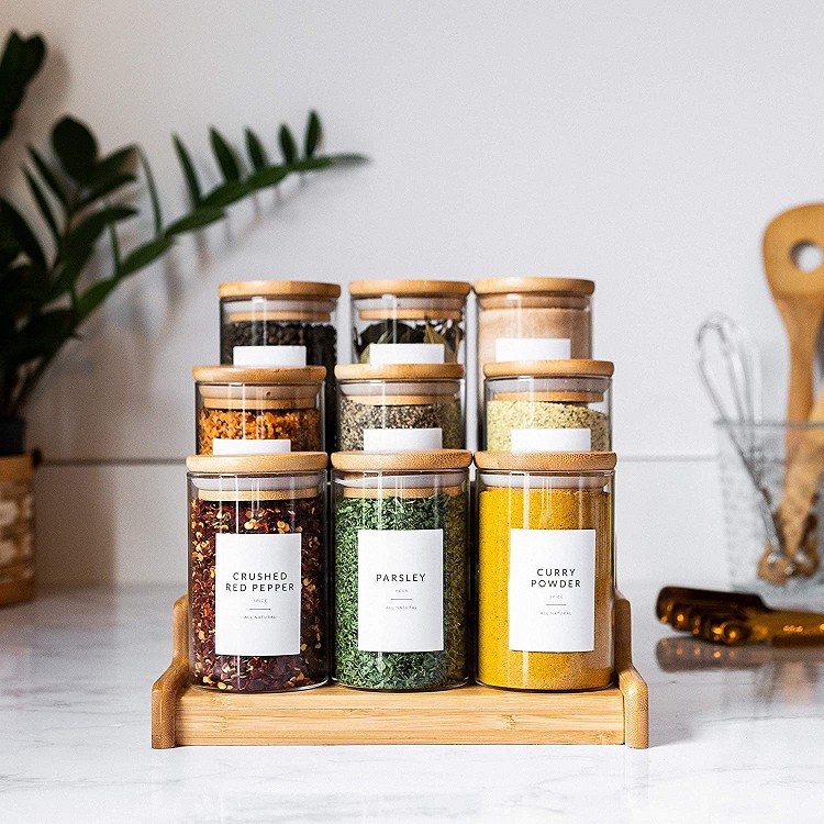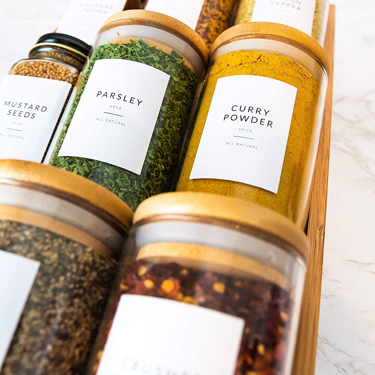| Product: | Spice Jar Labels - Preprinted Spice Stickers - Black Text on White Waterproof Label - Fits Round Bamboo Jars or Rectangular Spice Jars |
