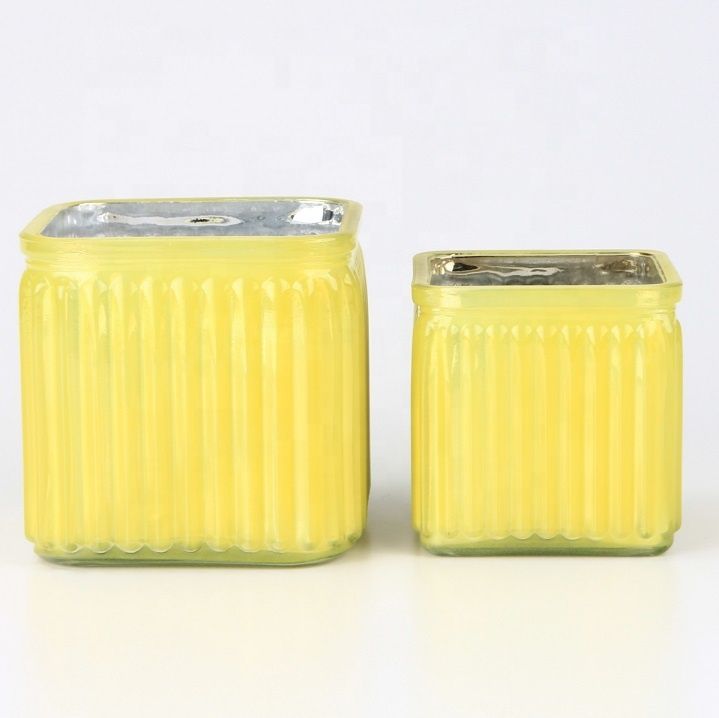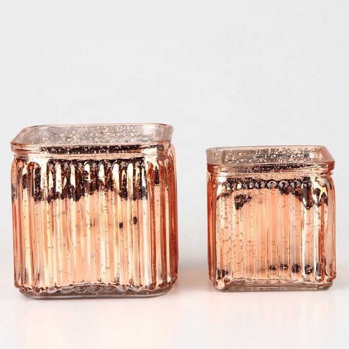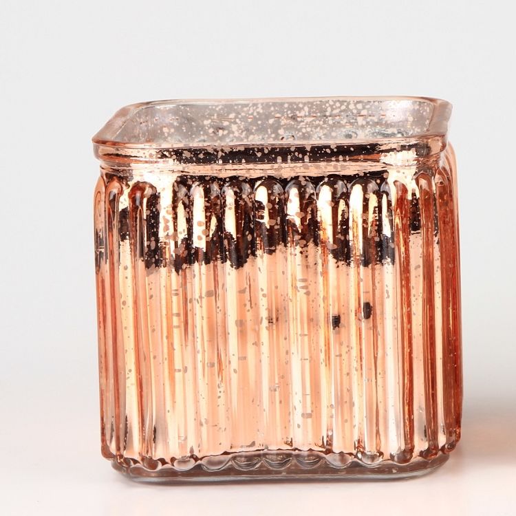 | Product | Vintage Empty Shiny Rose Gold Electroplated Ribbed Square Glass Candle Jar |