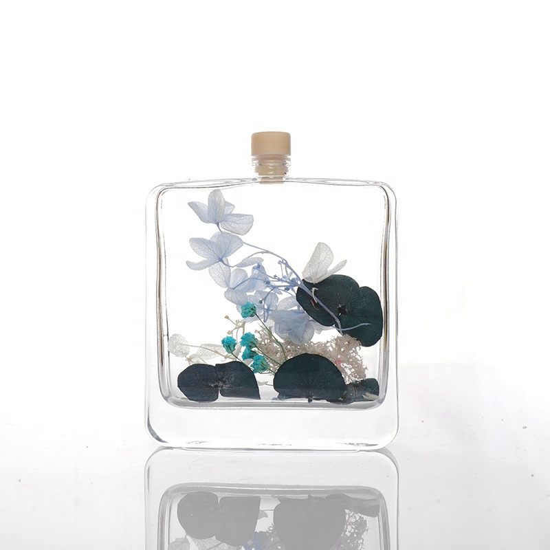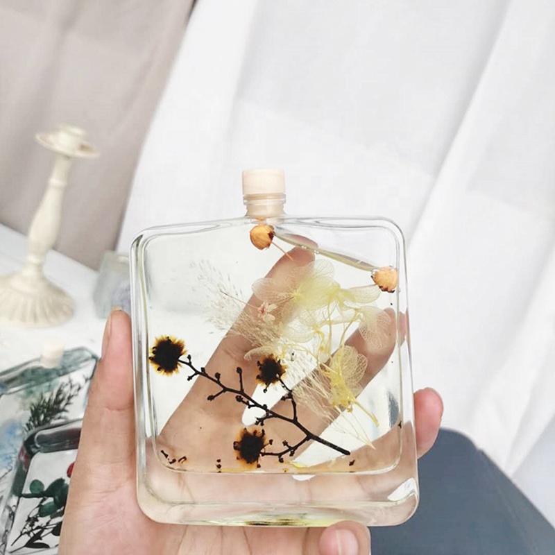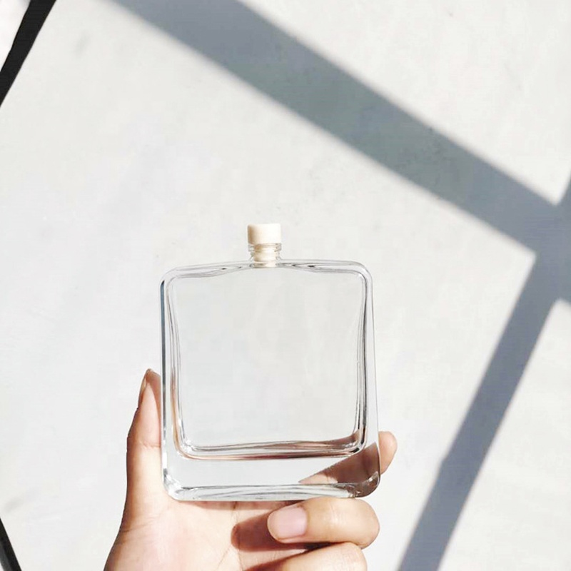 Wholesale 100ml Flat Square Shaped Empty Aroma Reed Diffuser Glass Bottle with Cork Stopper |