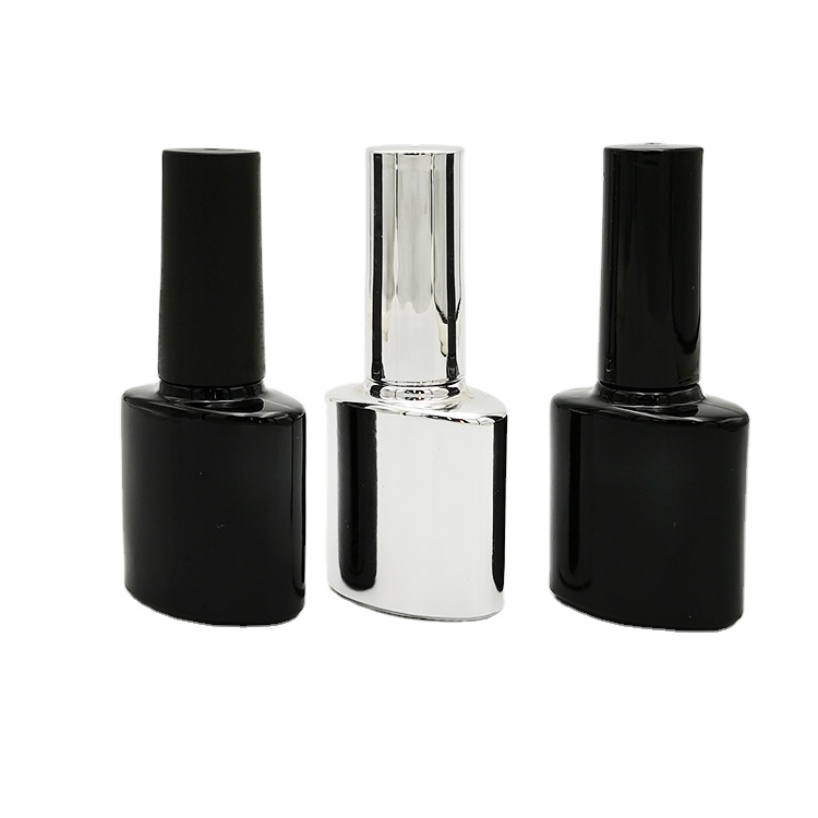 Wholesale 7.5 ml empty colorful flat glass bottle with cap and brush for nail gel polish packaging |