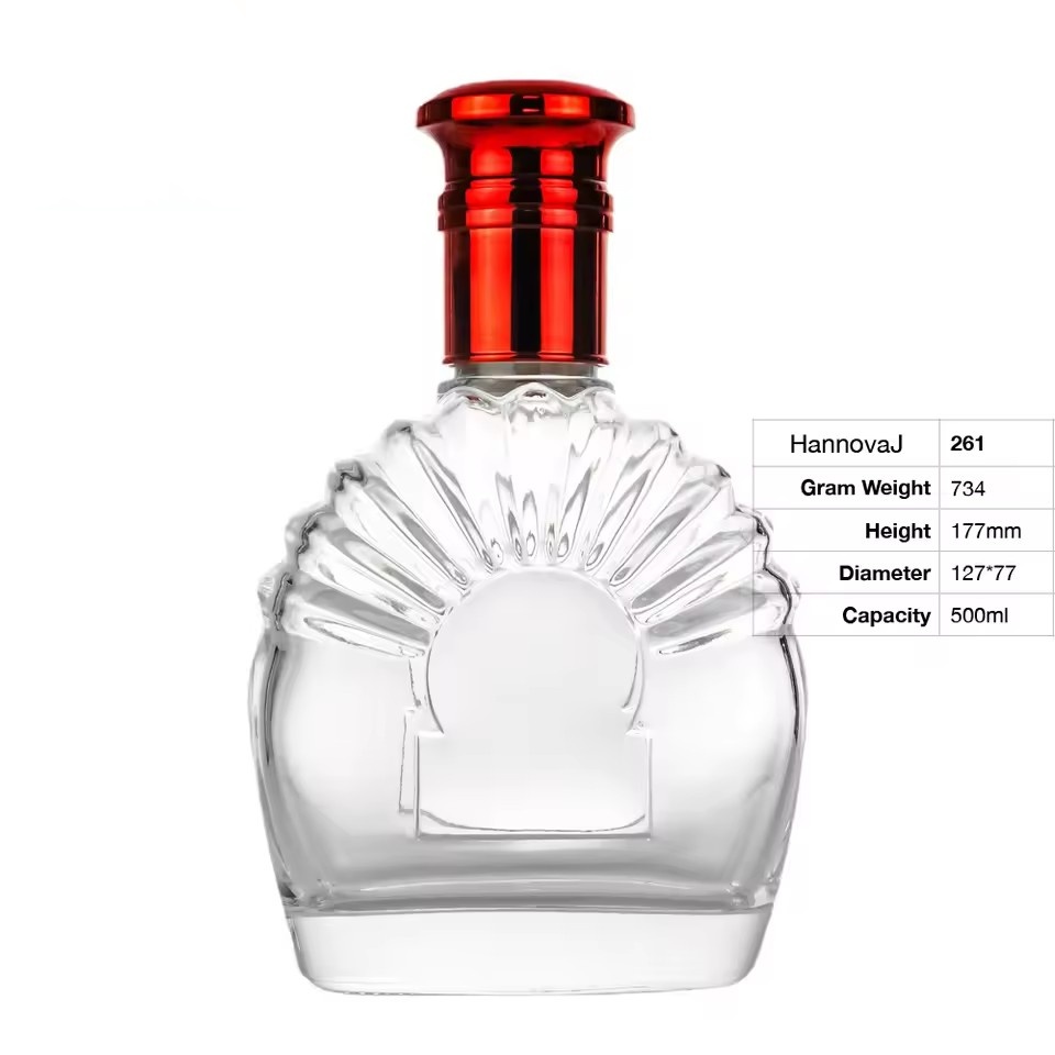 | Product: | Wholesale Custom Designed 500ml Fan-Shaped Embossed Clear Glass Bottle for Brandy Whiskey and Vodka with Custom Logo Option |