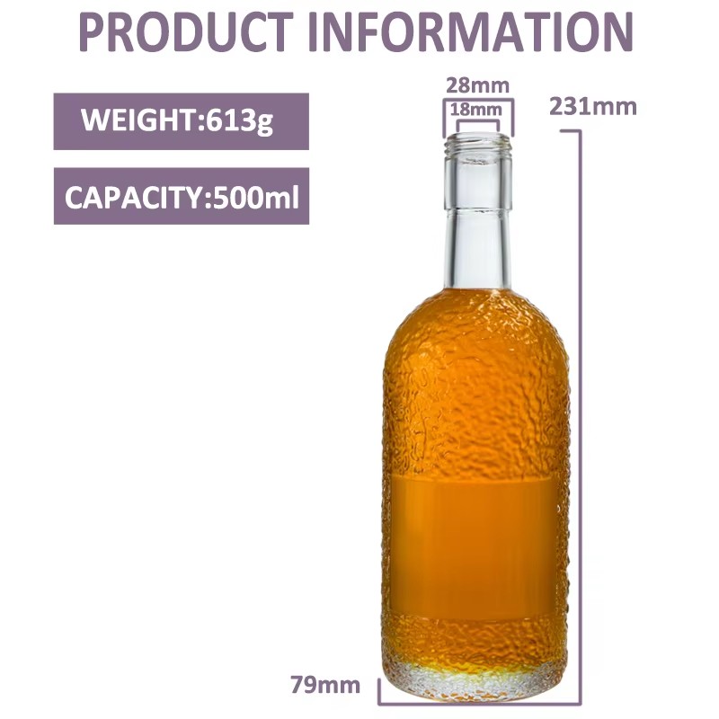 | Product: | Wholesale Embossed 500ml Empty Liquor Glass Bottles Vodka Gin Whiskey Rum Glass Bottle |