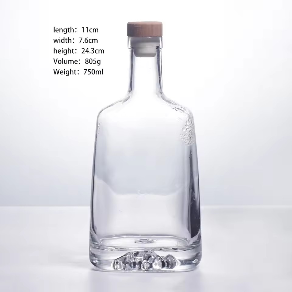 | Product: | Wholesale Luxury 750ml 75cl Flat square Luxury Flint Glass Bottle with Wooden Stopper, Used for Vodka Tequila Whiskey |