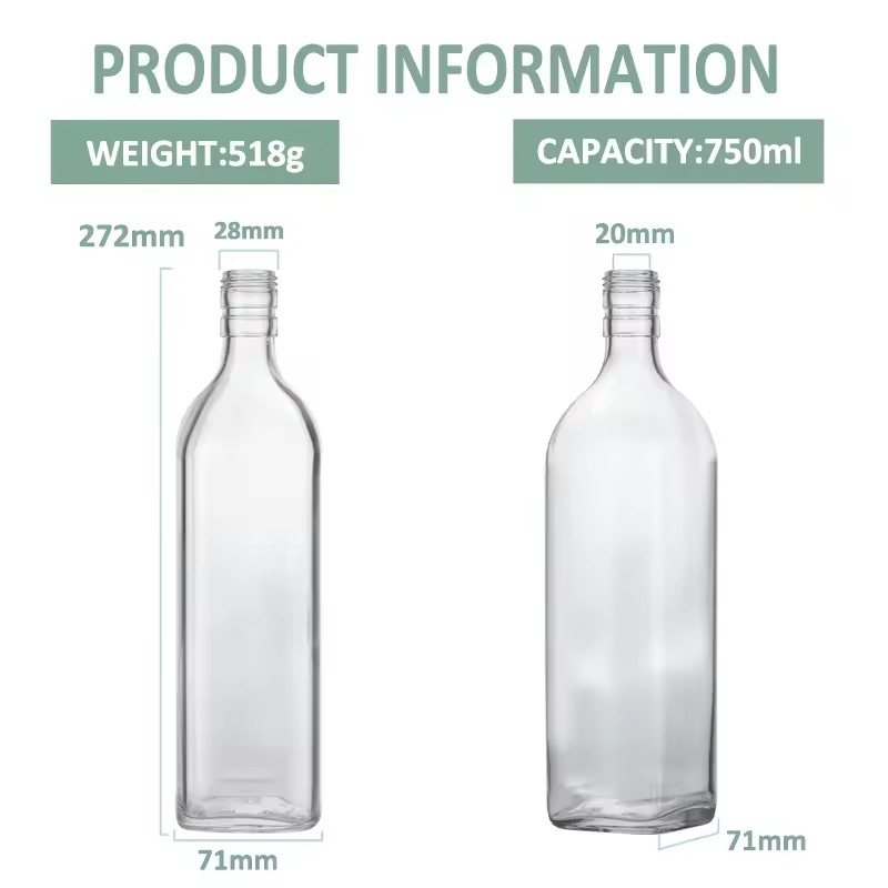 | Product: | Wholesale Square Empty 0.75L Whiskey Glass Bottle for Tequila 750ml Vodka Bottles |
