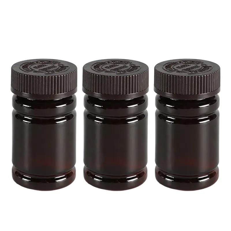 Amber Brown Plastic Medicine Bottle Wholesale Custom Screen Printing Surface Handing Child Proof Pill Bottles With Label |