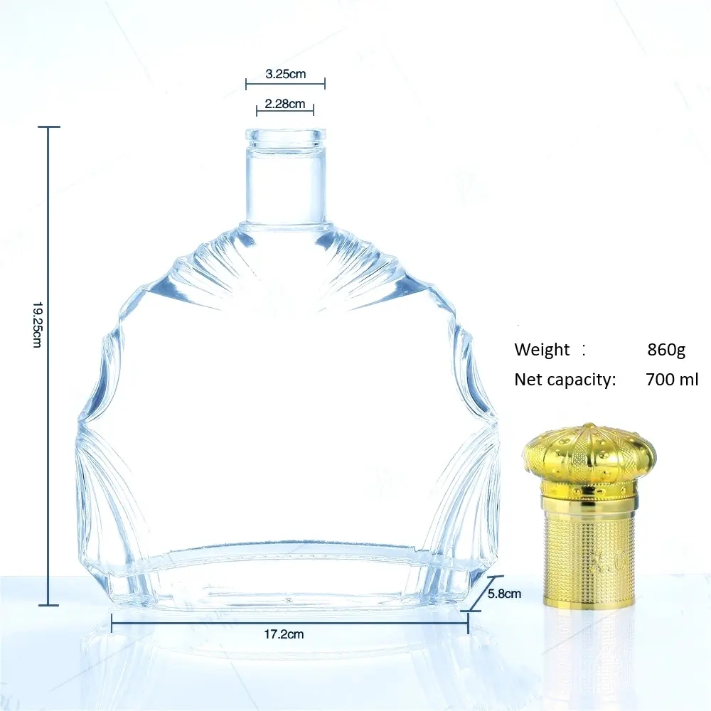best selling 500ml 750ml clear empty big glass bottle for XO alcohol liquor vodka beverage with low price for global drink |