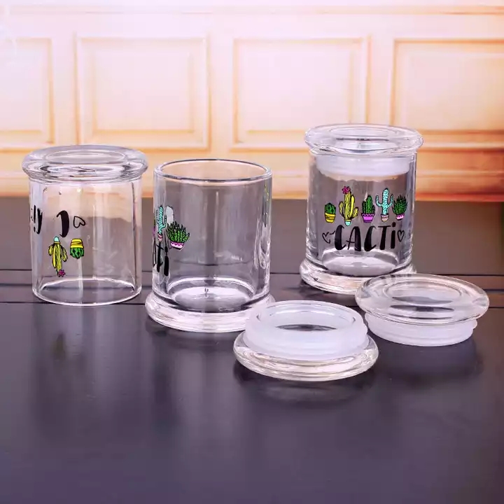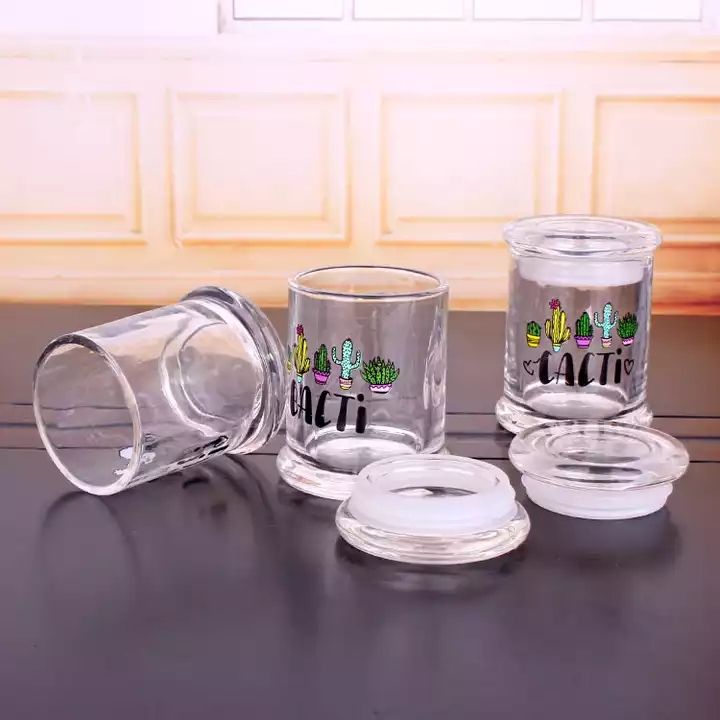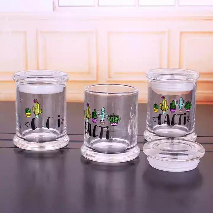 Custom 7oz 200ml empty clear glass candle jar container vessel with glass lid for candle making |