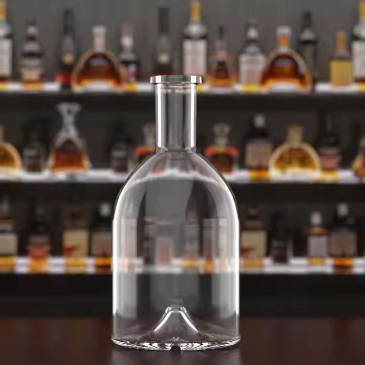 Custom Design Transparent Round Shoulder Rising Bottle 700Ml Vodka Brandy Rum Tequila Glass Whisky Bottles |