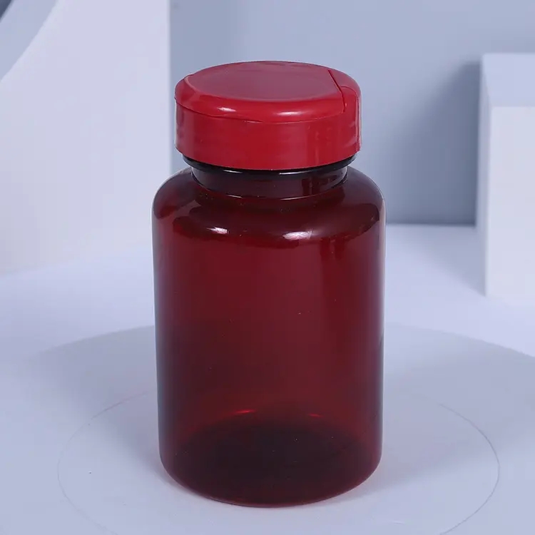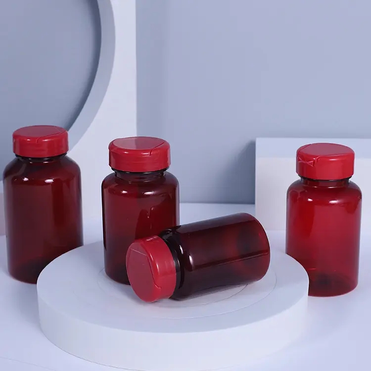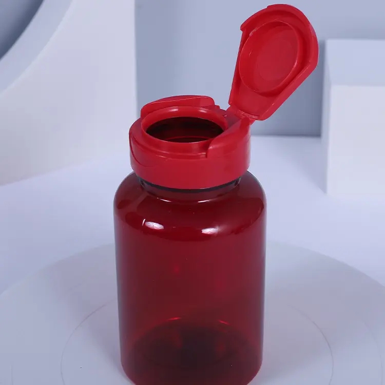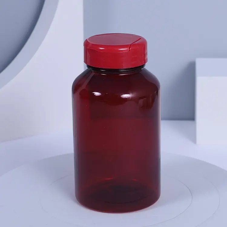 Custom Empty 150ml 200ml 250ml Red Plastic Pet Bottle For Tablets Pills Capsule Candies Packaging With Tear Cap |