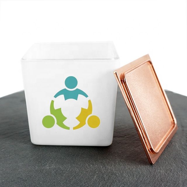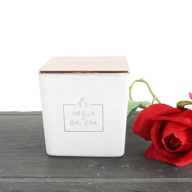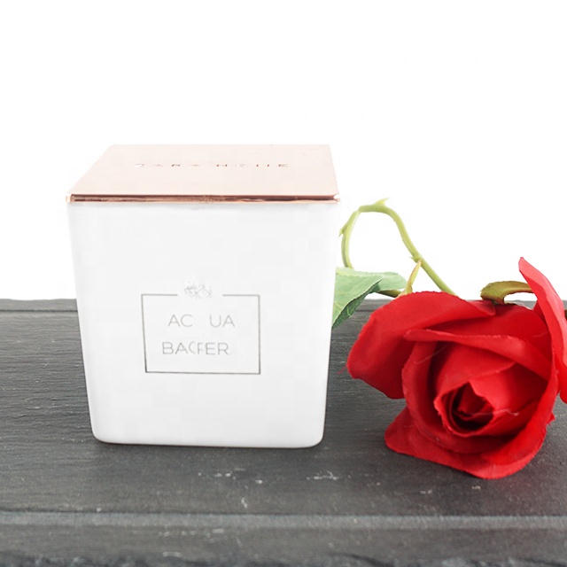 | Product: | custom logo design matte white 10oz square candle container with silver rose gold metal lids |