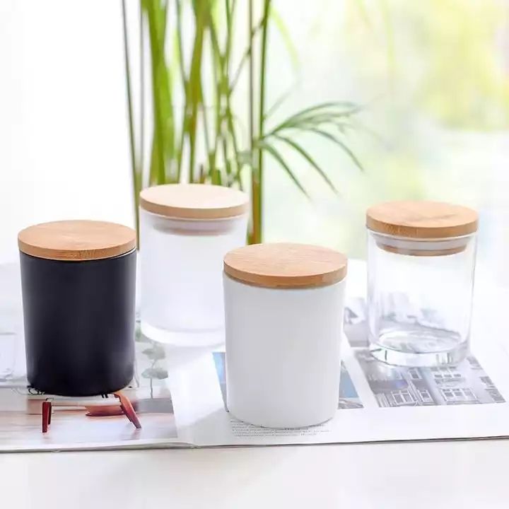 Custom Logo Empty Matte Black Wide Mouth Small Candle Jar Candle Jars Glass with Lid |
