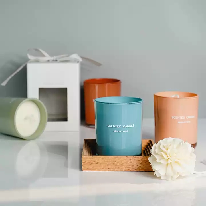 Custom logo spray color matte 70oz 10oz 12oz luxury empty glass candle jars with lid and packaging |