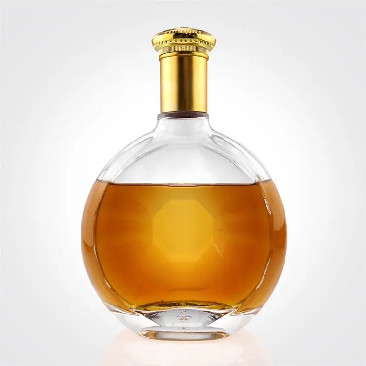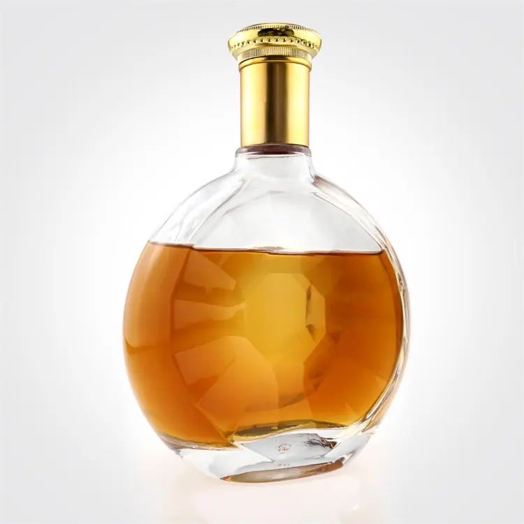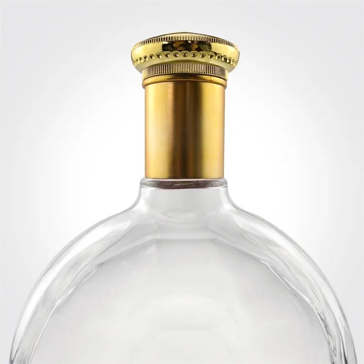 Custom moon shape flat 700ml rum glass bottle with metal cap |