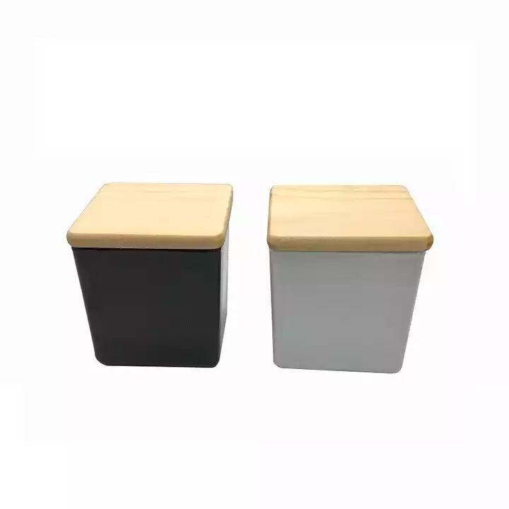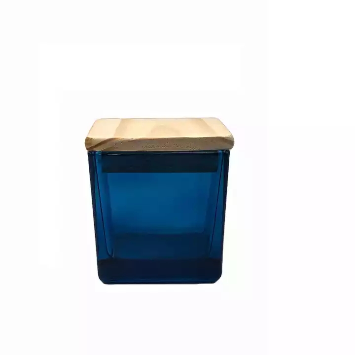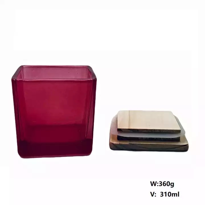 Custom Multi-color Christmas Square Candle Jars Cups Glass Candle Container with Bamboo Lid |