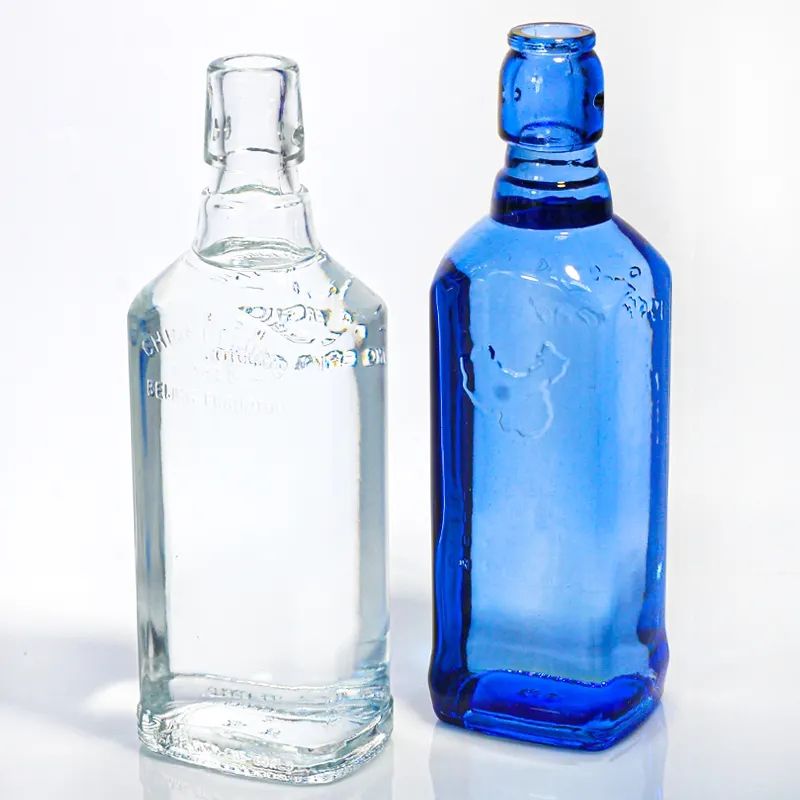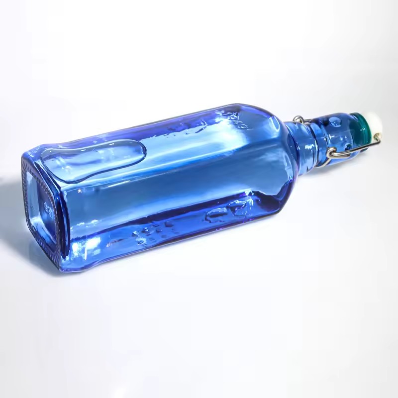 Custom Premium Blue color Glass Bottles With Swing Top Cap For Vodka Spirits |