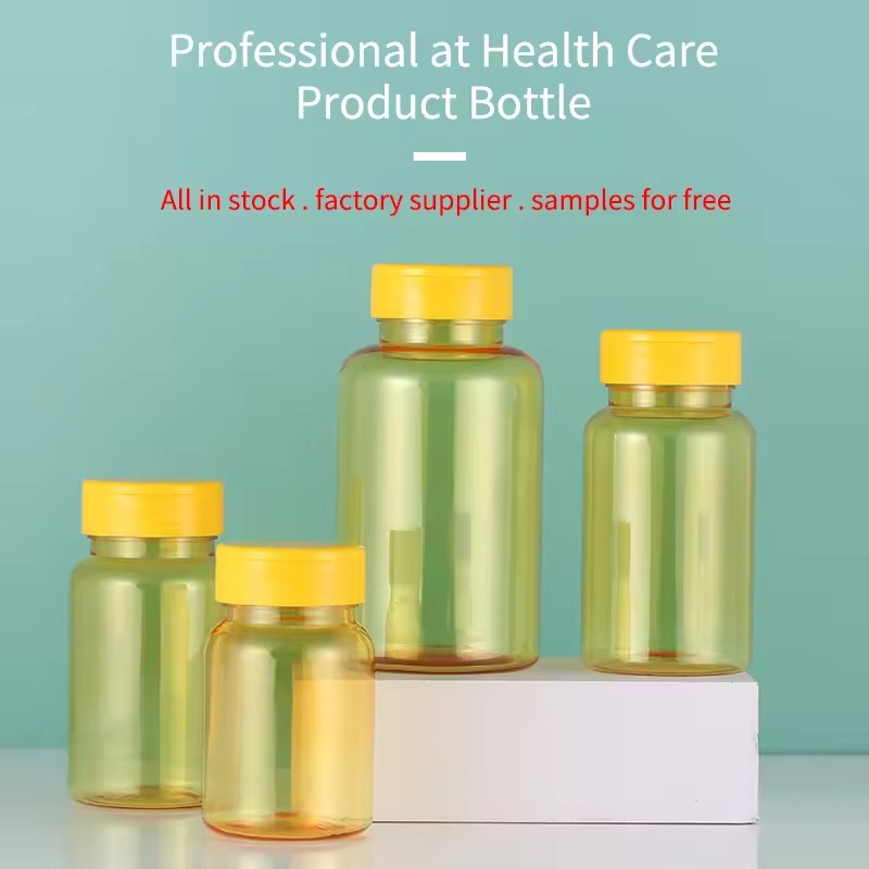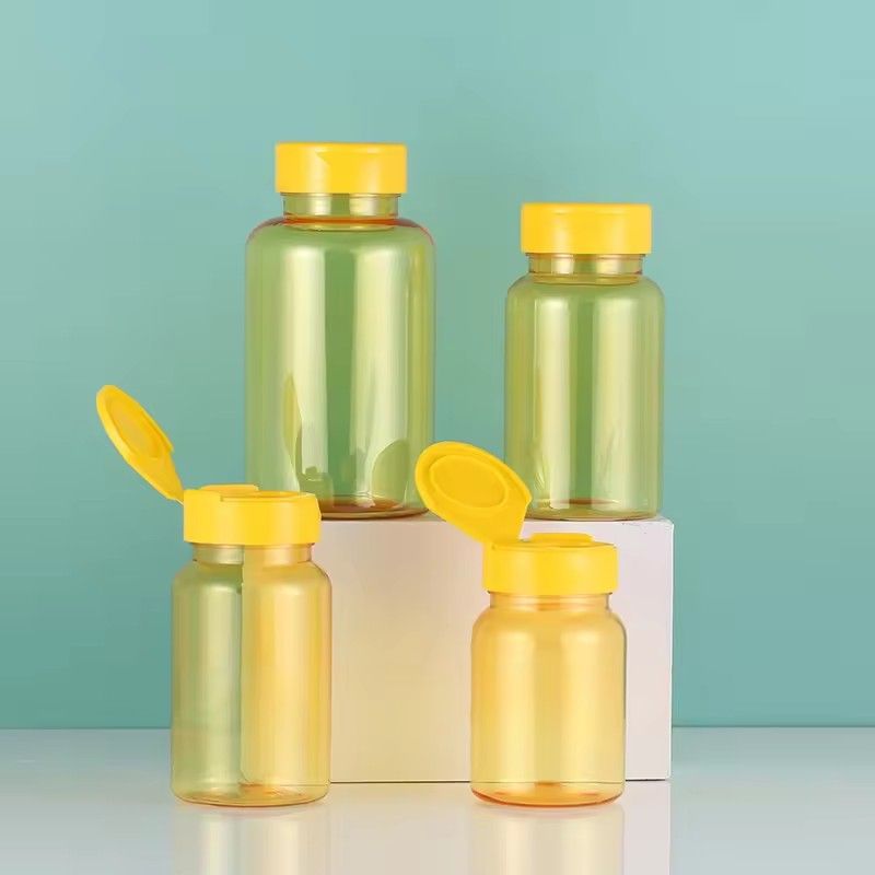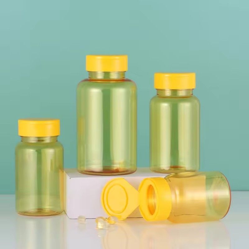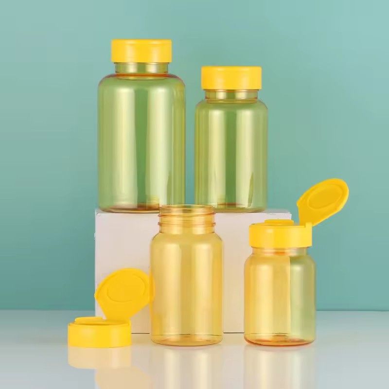 CUSTOM Transparent Yellow Acrylic Bottle Safety Cap Health Medicine Powder Tablet Travel Plastic Bottles Factory Supplier |