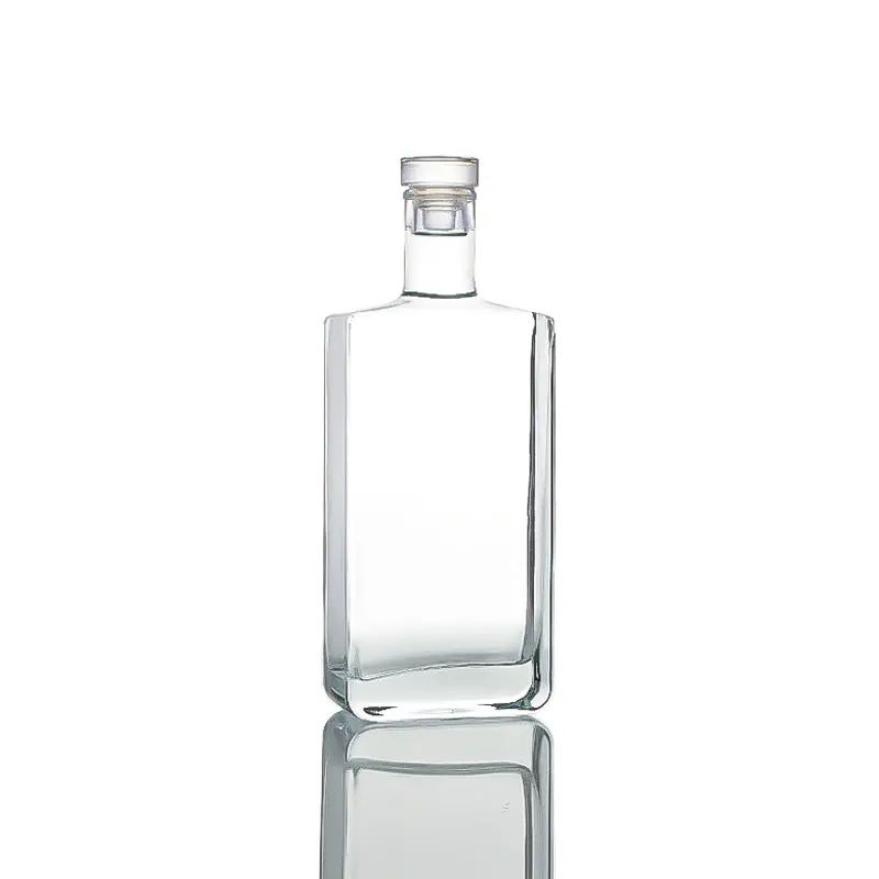 Customize Products Simple Extra Flat Clear Empty Liquor Wine Glass Bottles 500ml with Cork |