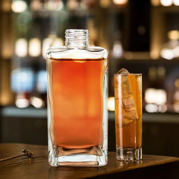 Customized Embossed 750ml Super Flint Square Glass Bottle Rum Vodka Glass Bottle With Screw Mouth |