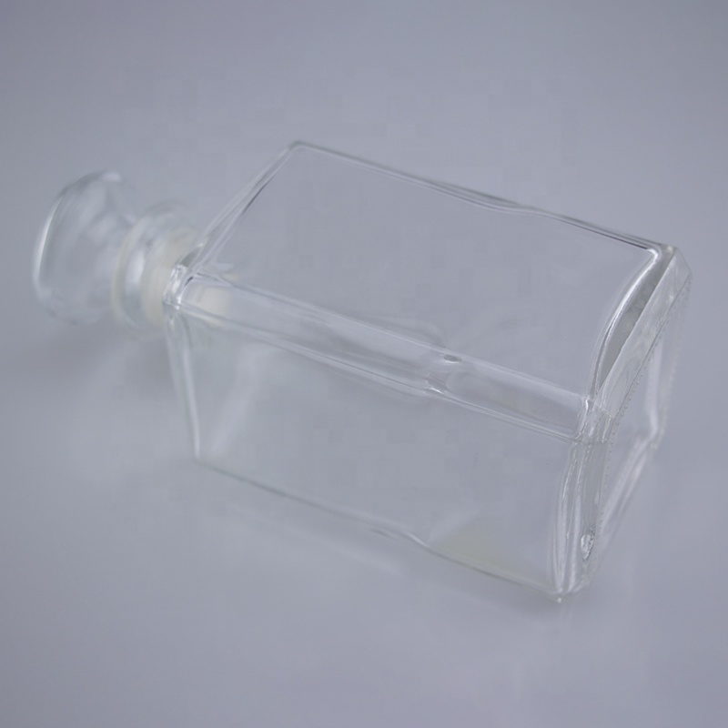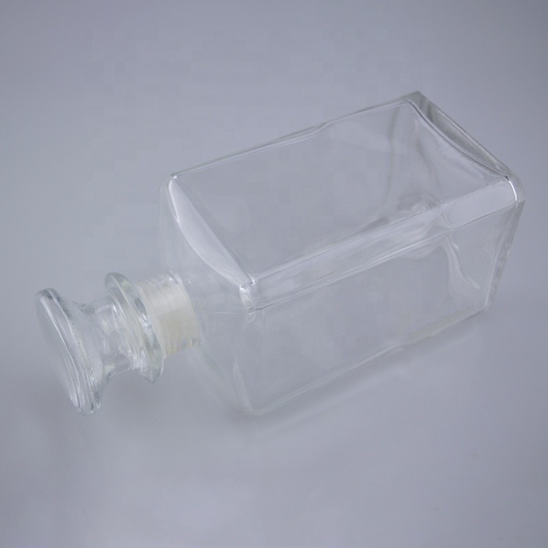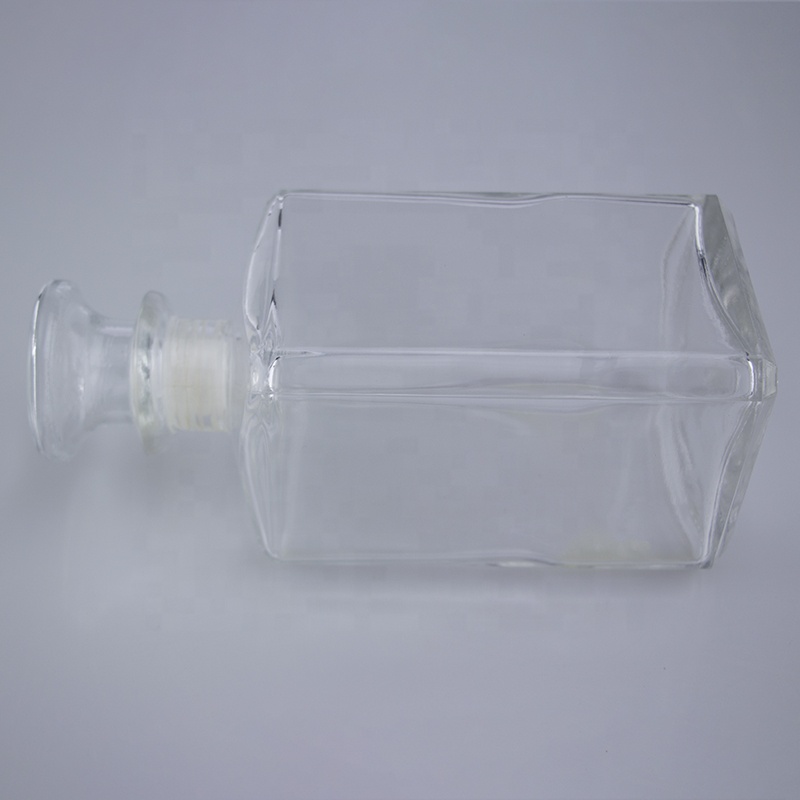 elegant 750ml squared transparent screen printing rum whiskey vodka super flint glass bottle with cork stopper closure |