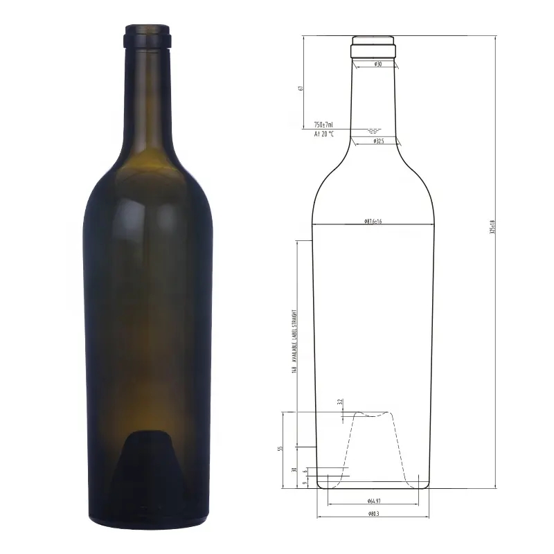 Factory produced high temperature resistance lead free wine glass bottle empty 750ml bordeaux empty wine bottles |