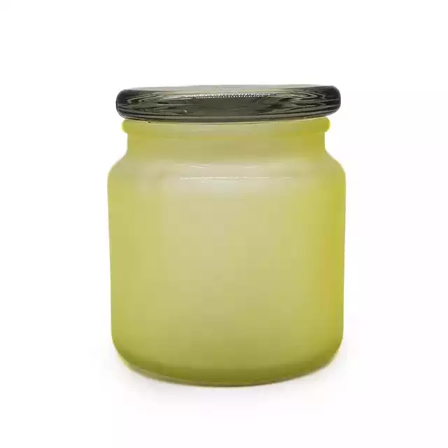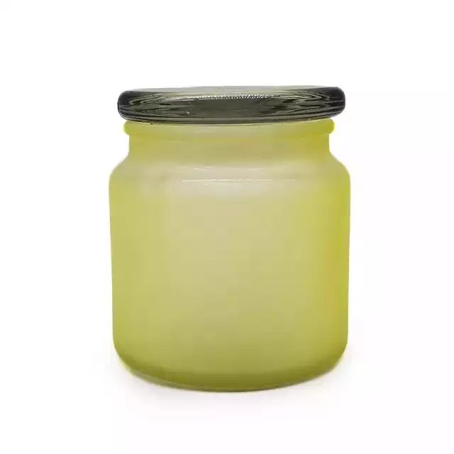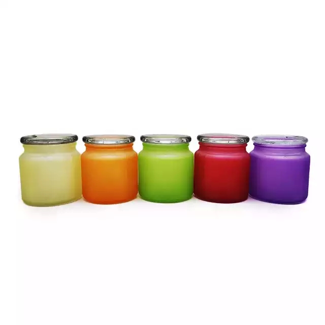 Factory wholesale customize colored frosted glass candle jars with glass lids for home decoration |