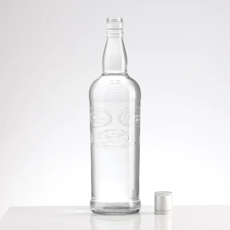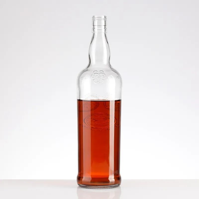 Factory Wholesale Empty Round Super Flint Vodka Whiskey Bottles 1000ml Clear Glass Liquor Bottle With Bar Top |