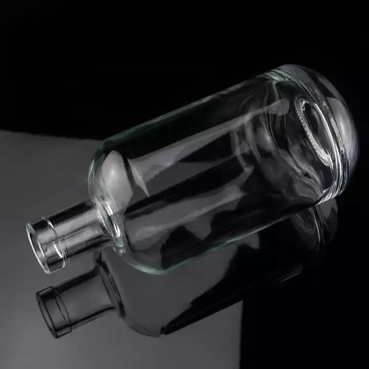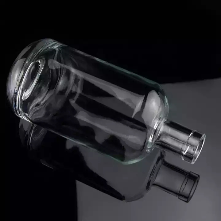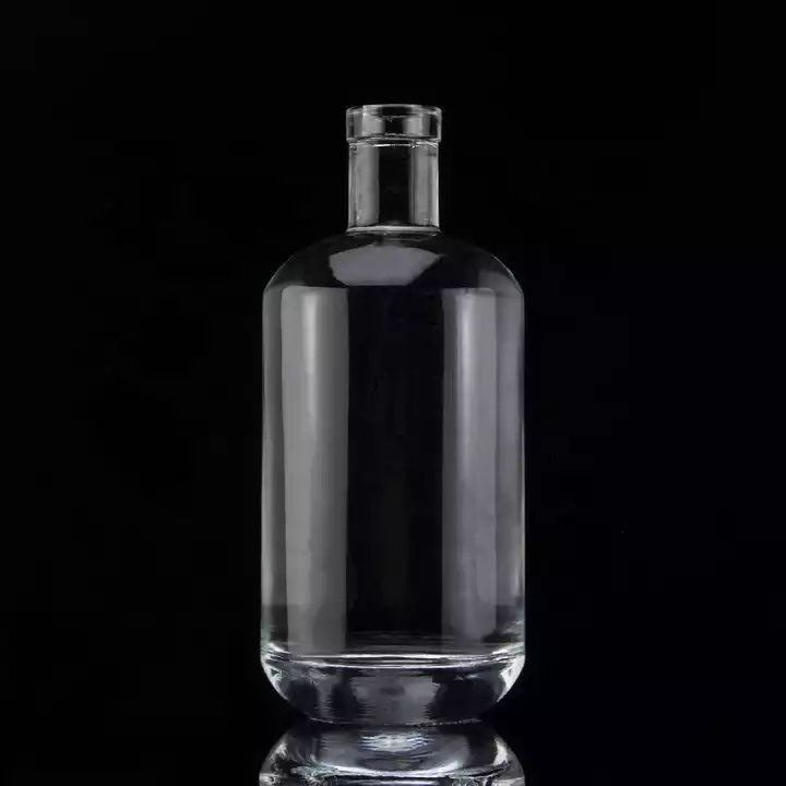 Fancy Design Round Vodka Glass Bottle 750ml Transparent Heavy Bottle With Cork |