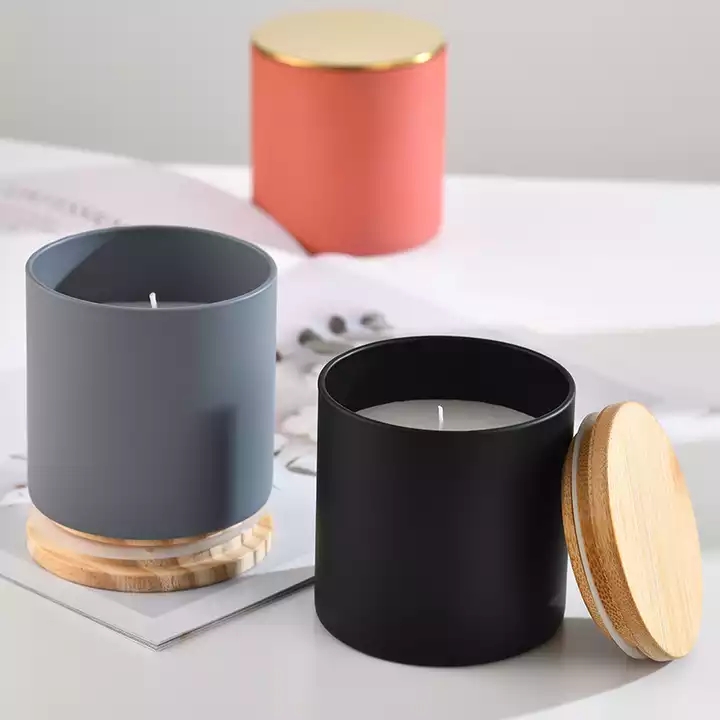 Festival home decoration empty candle making ceramic glass jar customized color glass candle holder with lid |