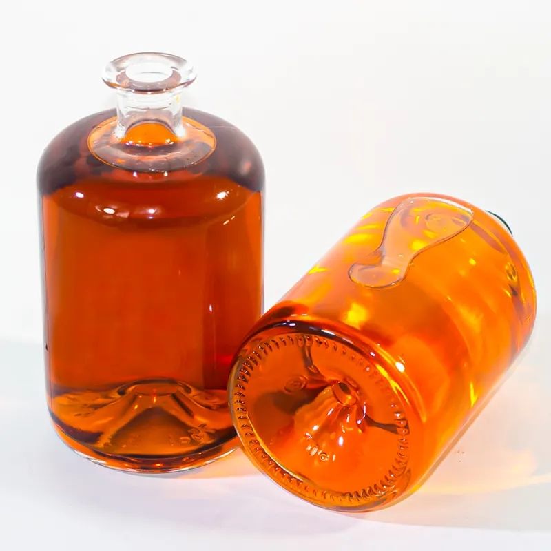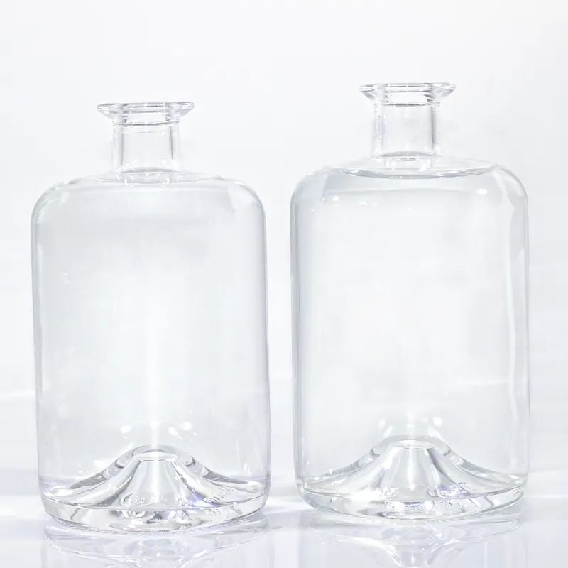 Glass Bottle Accept Customization 700ml Bottom recessed transparent thick round glass bottle with high concave bottom |