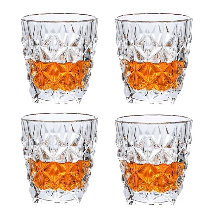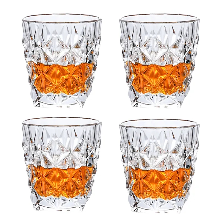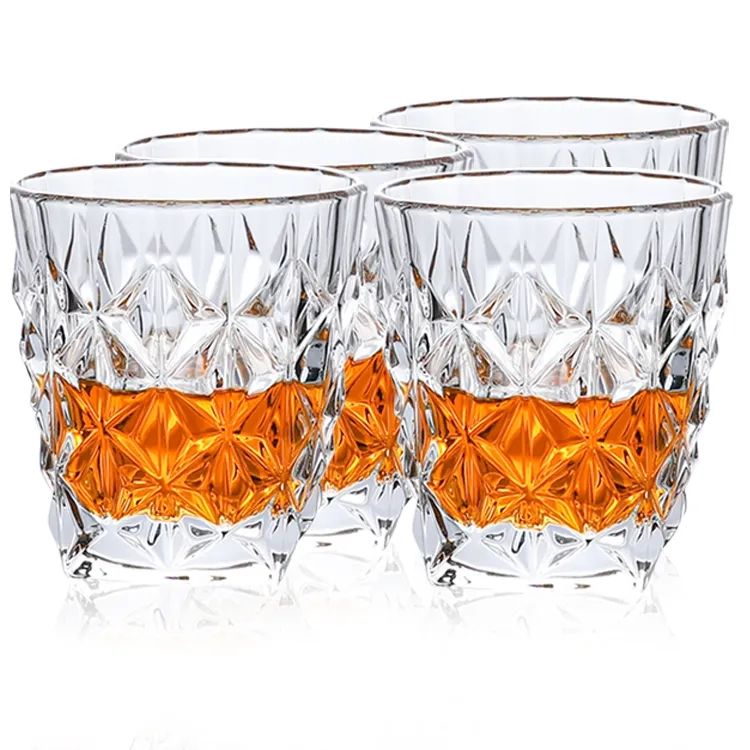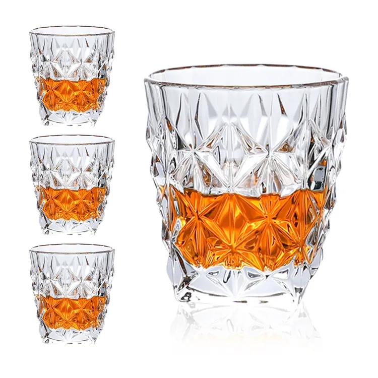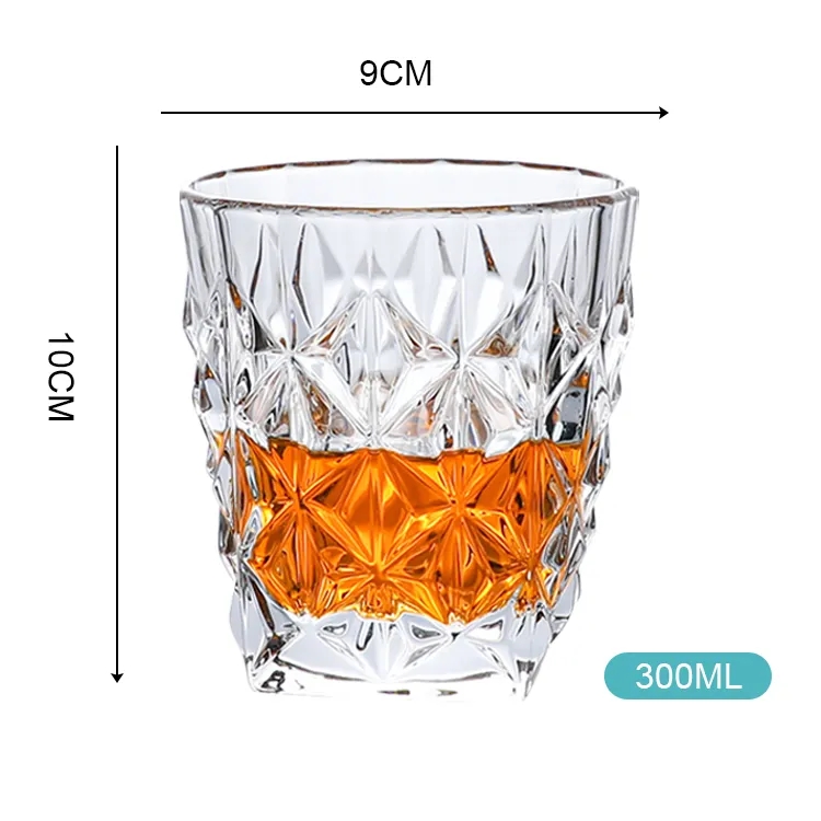 Heavy Base Embossed Creative Diamond Transparent Glasses Whisky Crystal Engraved Liquor Drinking Whiskey Glass Cups |