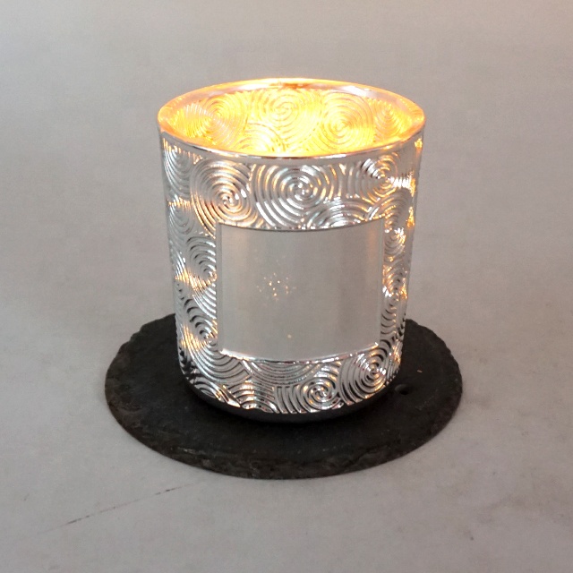 | Product: | high quality electroplated round empty silver mercury glass candle container |