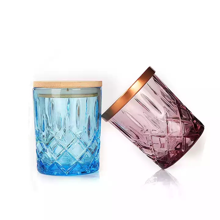 Hot sale 300ml clear luxury sprayed empty glass candle jars with wooden bamboo and metal lids for candle making |