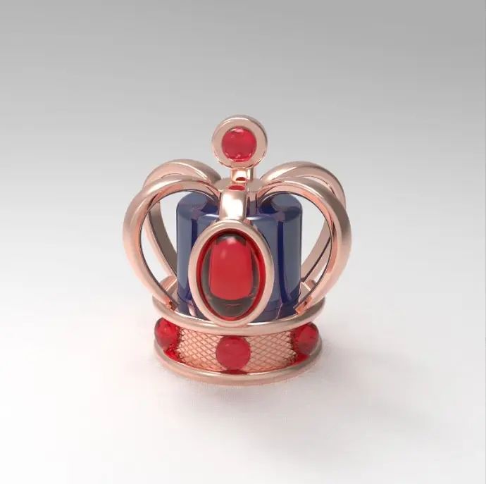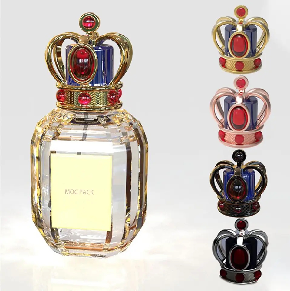 Luxury Dubai Arabia gold zinc alloy crystal perfume cap pink crown cap with ball for cosmetic Attar Oud perfume bottle |