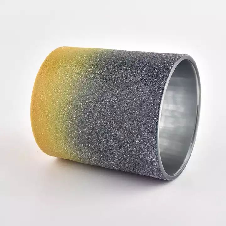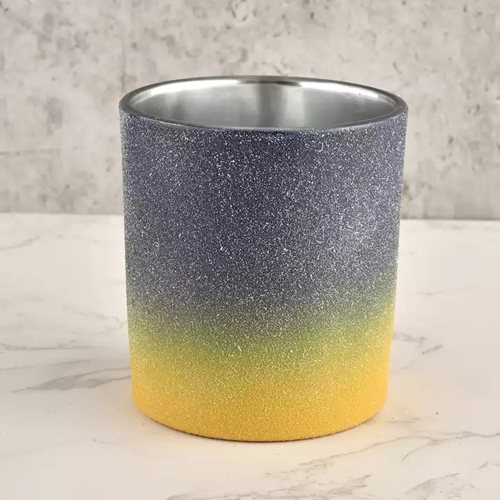 luxury ombre color glass candle jar metal color inside |