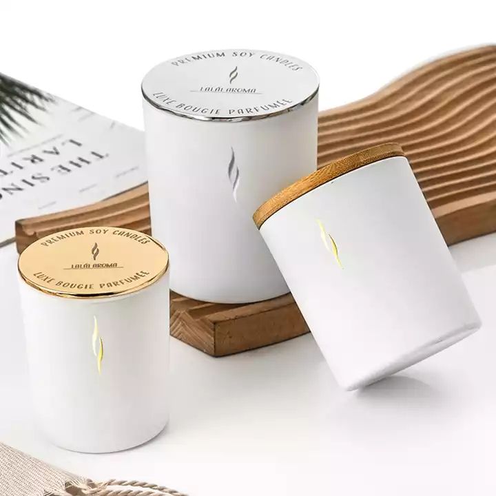 Matte white cement soy wax luxury empty glass candle jars aromatherapy decorative glass candle holder with box |