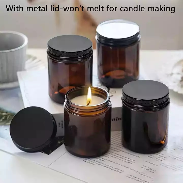 New design 120ml 250ml empty Amber jar glass aluminum lid candle jar |