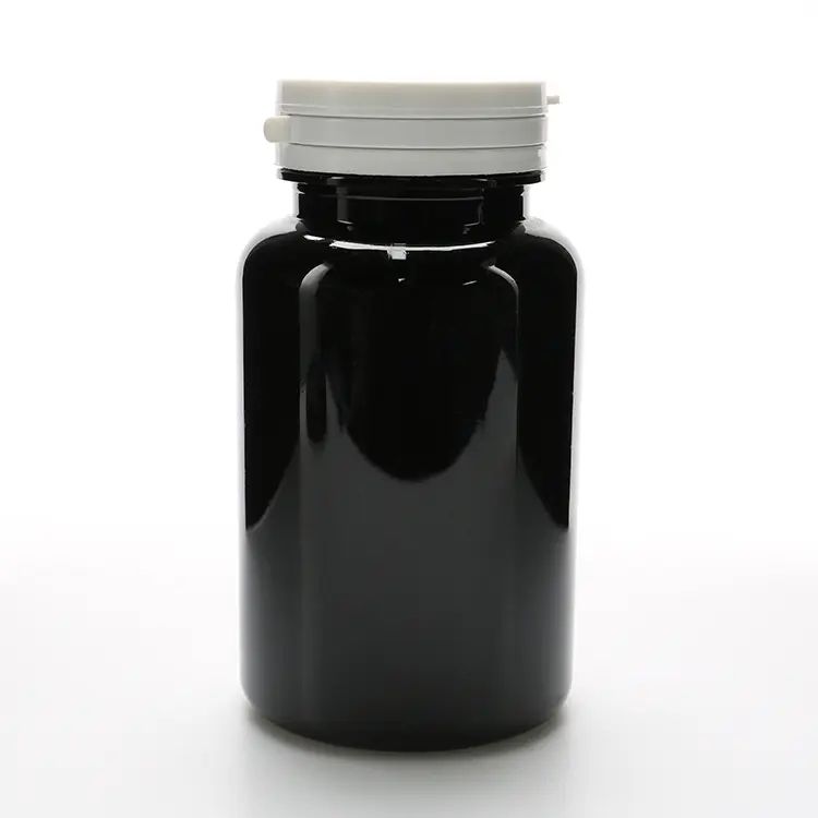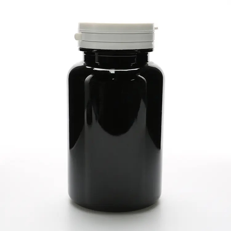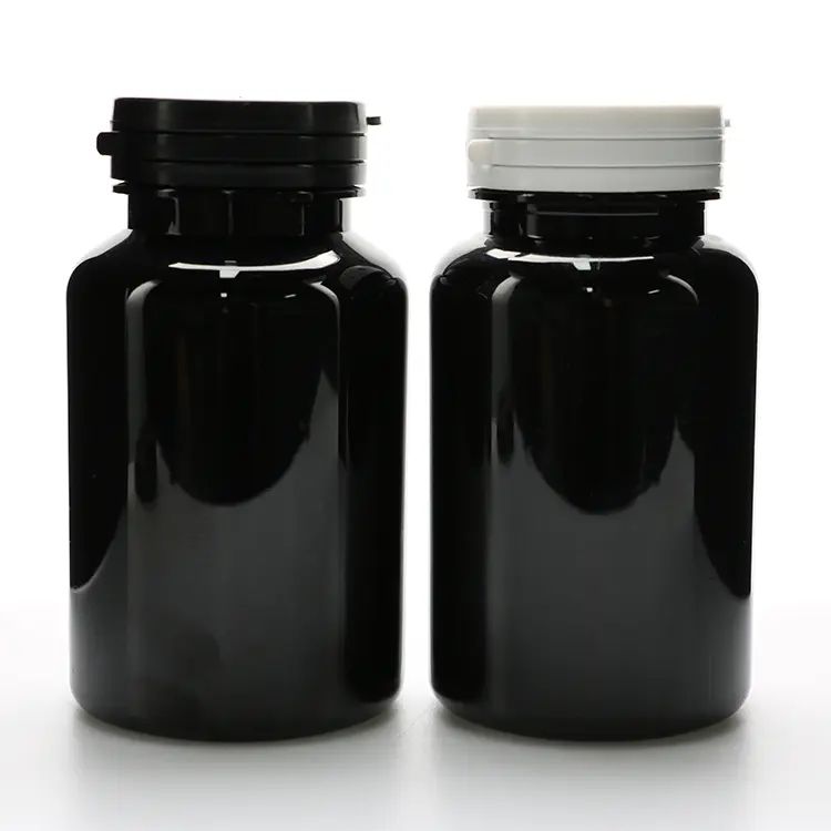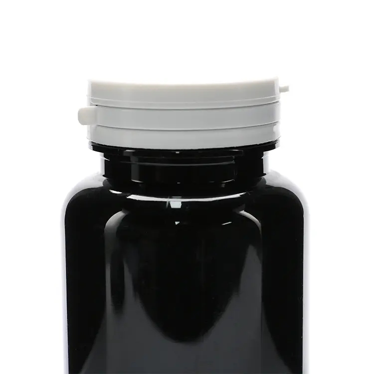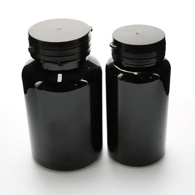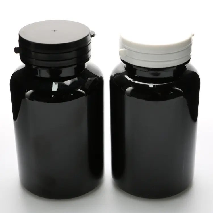 Plastic Black Pet Jar Empty Pill Container Capsule Packing Bottle With White Flip Top Cap |