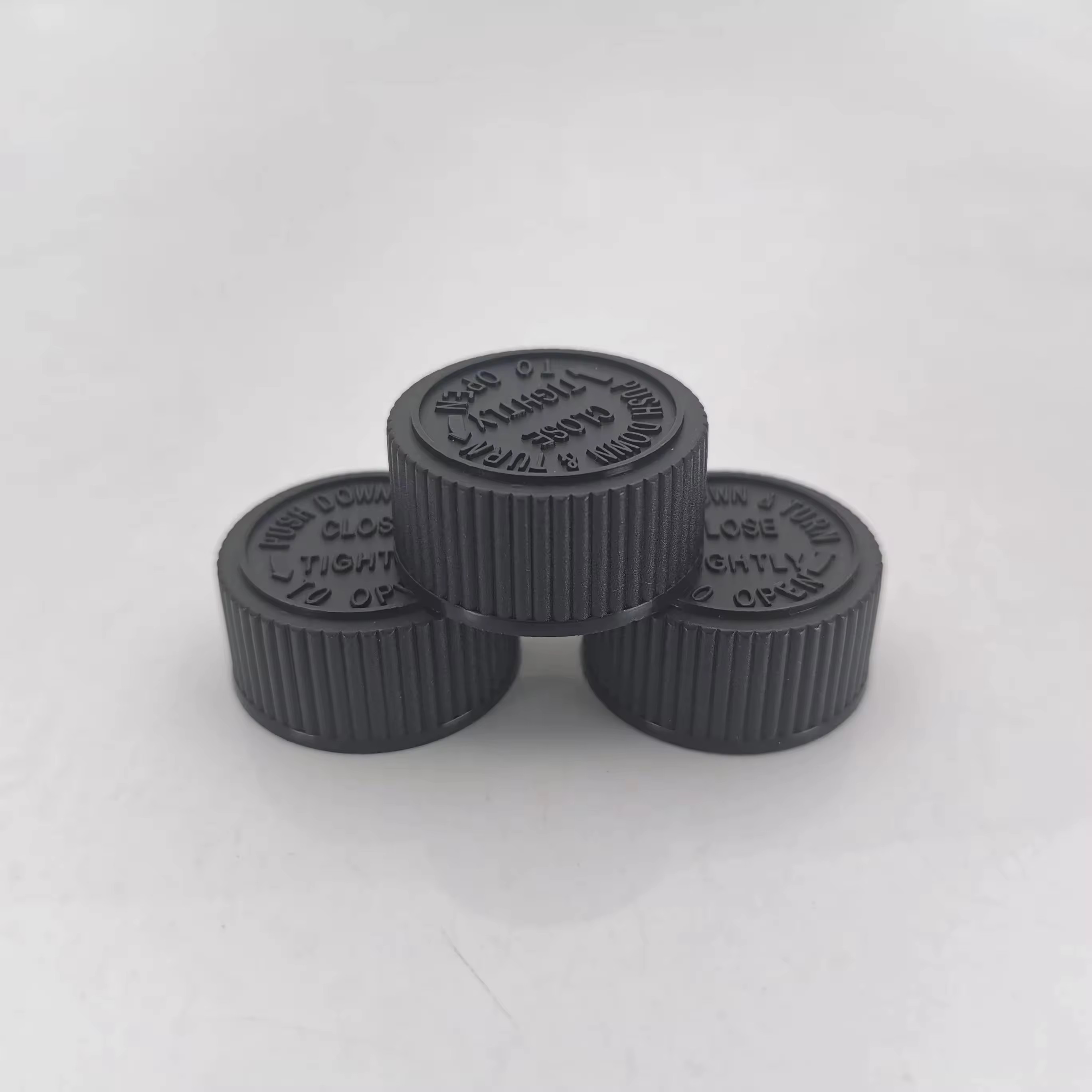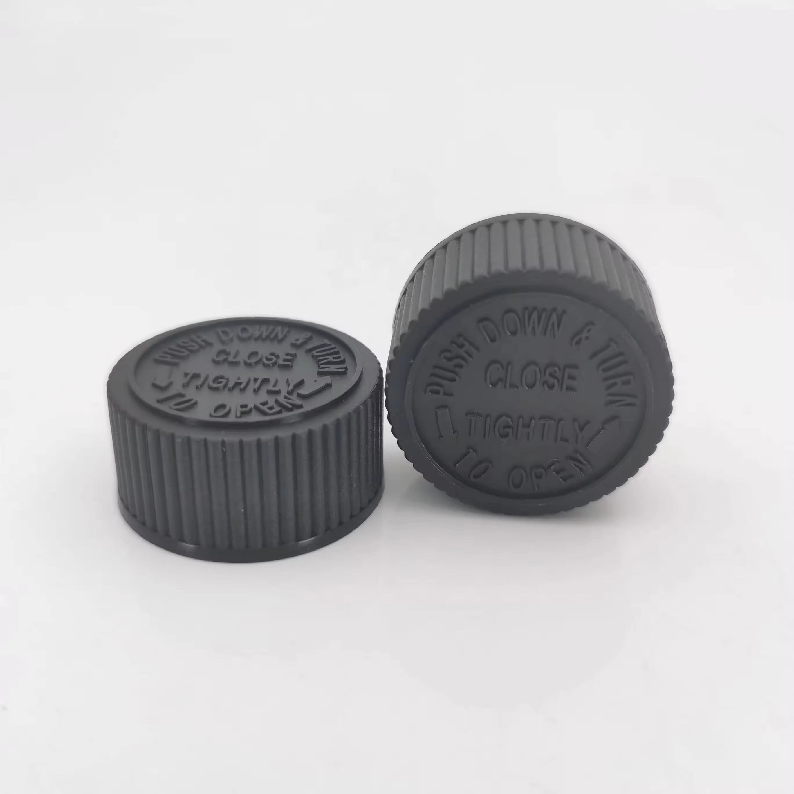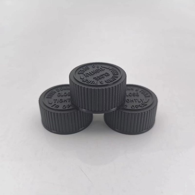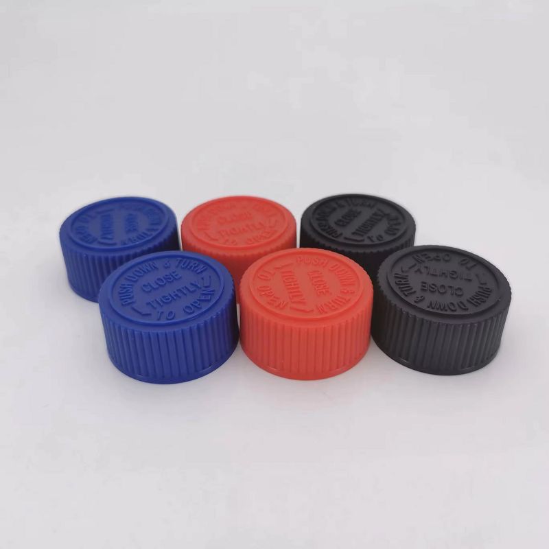 | Product Name : | Recyclable leak-proof 28 mm CRC caps plastic material press twist caps PE foam liner Child proof caps |