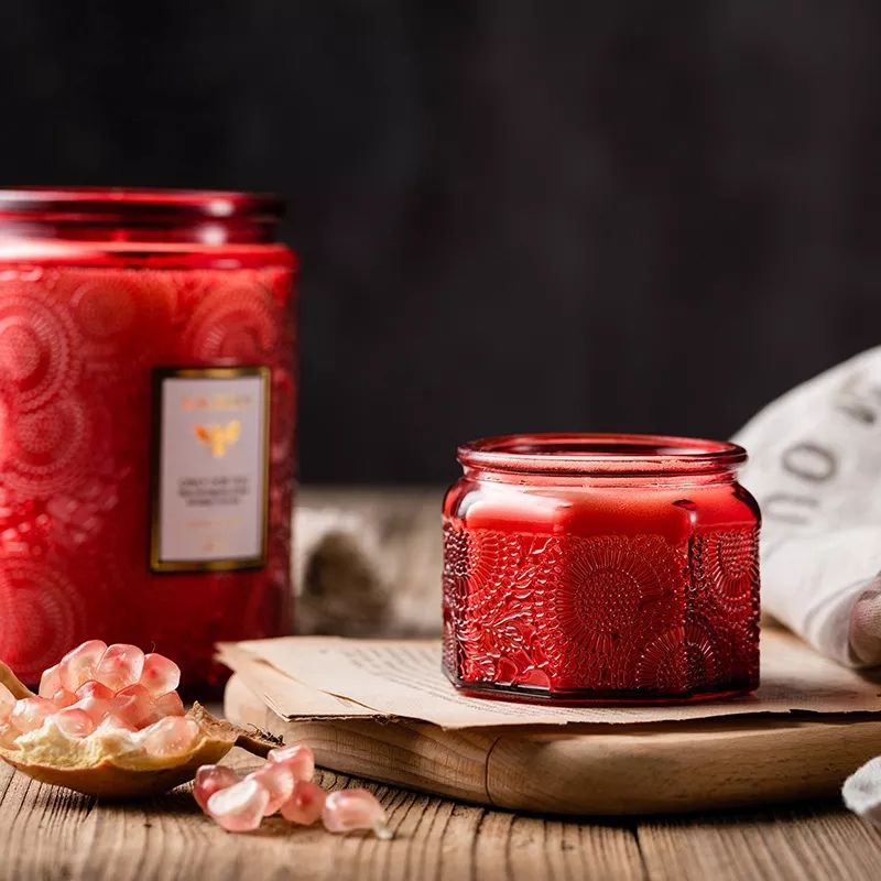 Red 120ml Colors Glass Candle Jars Embossed Candle Container With Metal Lid |