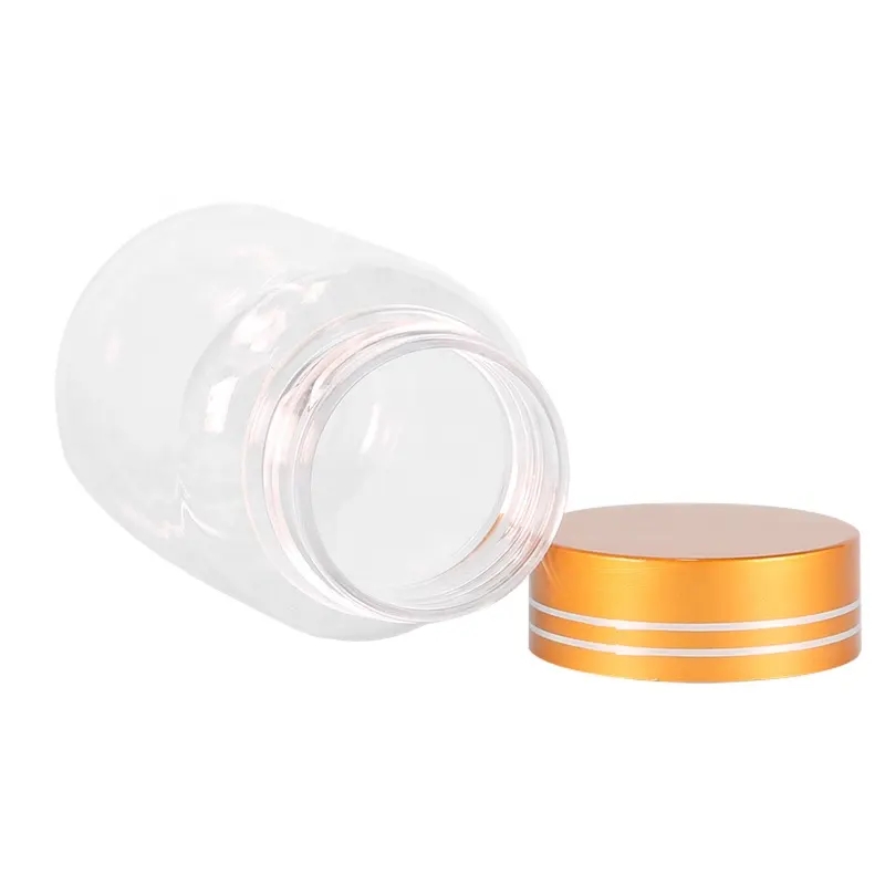 Soft Touch 80ml Clear Pet Vitamin Pill Bottle Plastic Capsule Bottle Jar Containers With Metallic Cap |