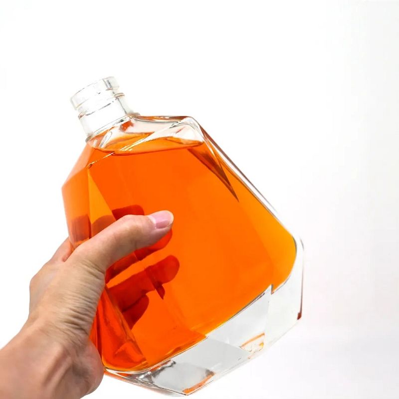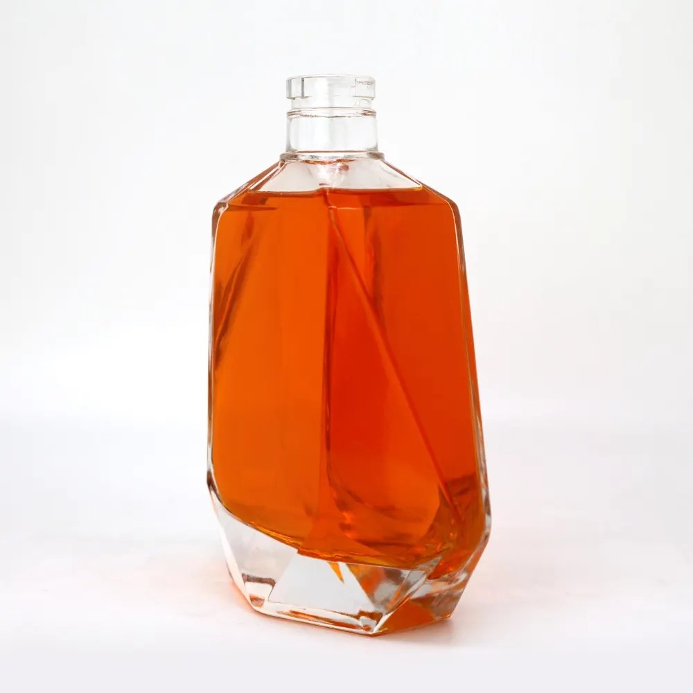 Unique Design Embossed Glass Custom Shape Glass Liquor bottle for whisky vodka gin spirits |