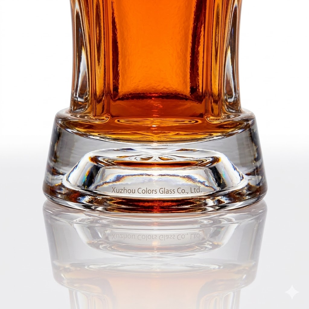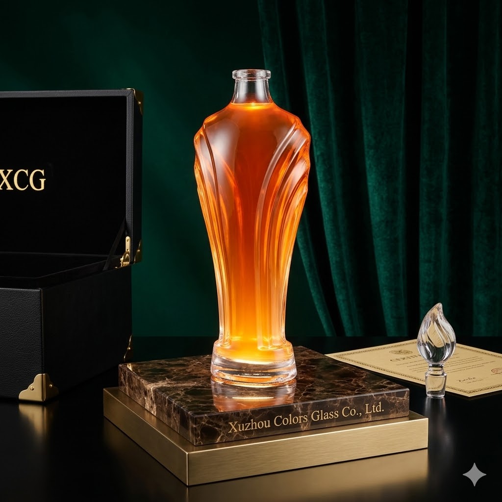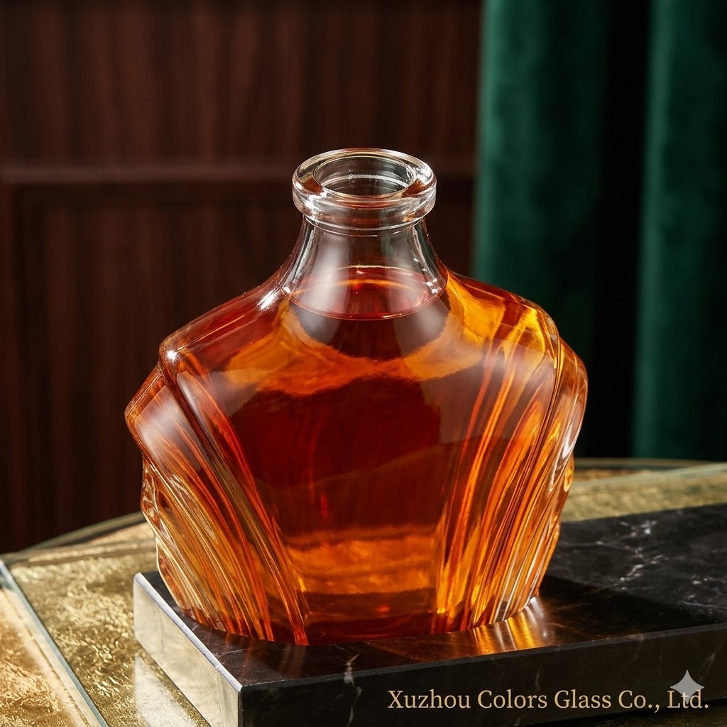 This unique shape glass liquor bottle is designed for premium spirits with a focus on both visual impact and product safety.
