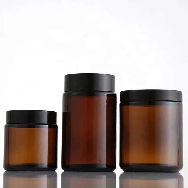 Wholesale 4oz 8oz amber empty wide mouth container custom glass candle jars with lid in bulk |