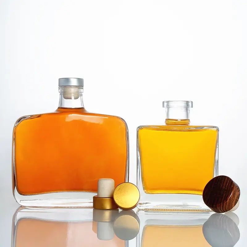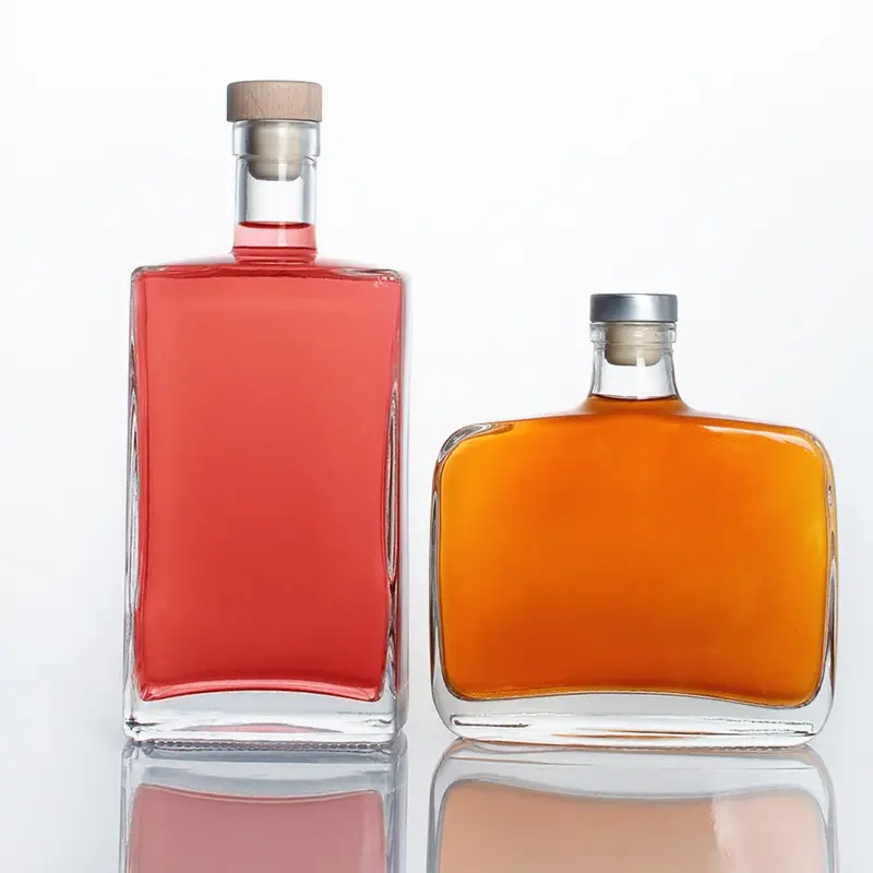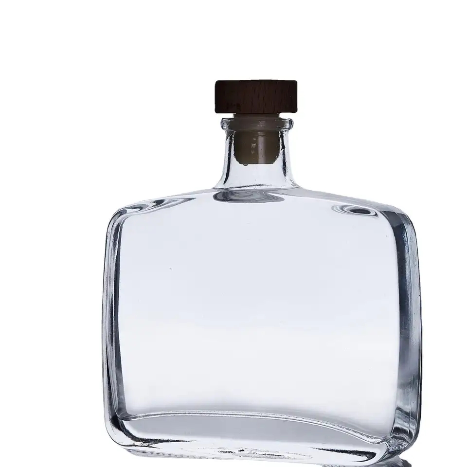 Wholesale 500ml 700ml Transparent Flat Whiskey Glass Wine Craft Bottle with Screw Cap |