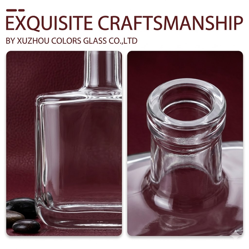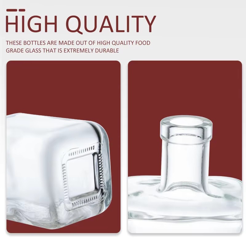 This 700ml square glass liquor bottle is designed for premium spirits brands seeking a distinctive and modern packaging solution.