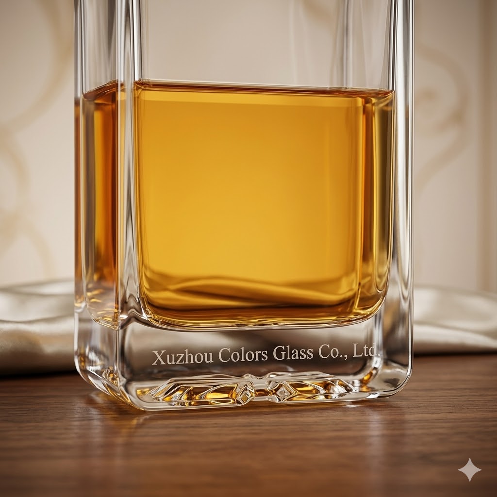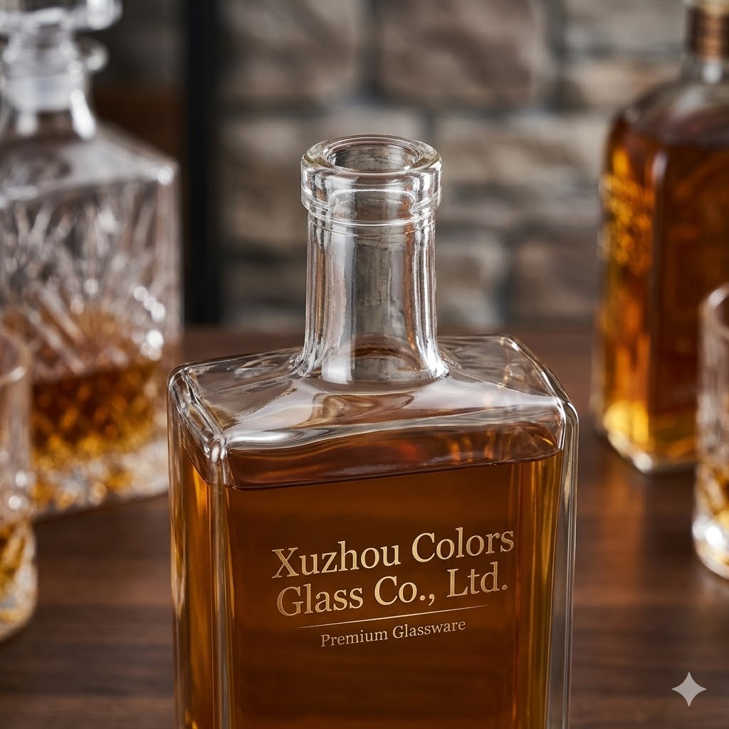 Crystal clarity combined with square design and custom branding creates a premium and highly recognizable spirits product.