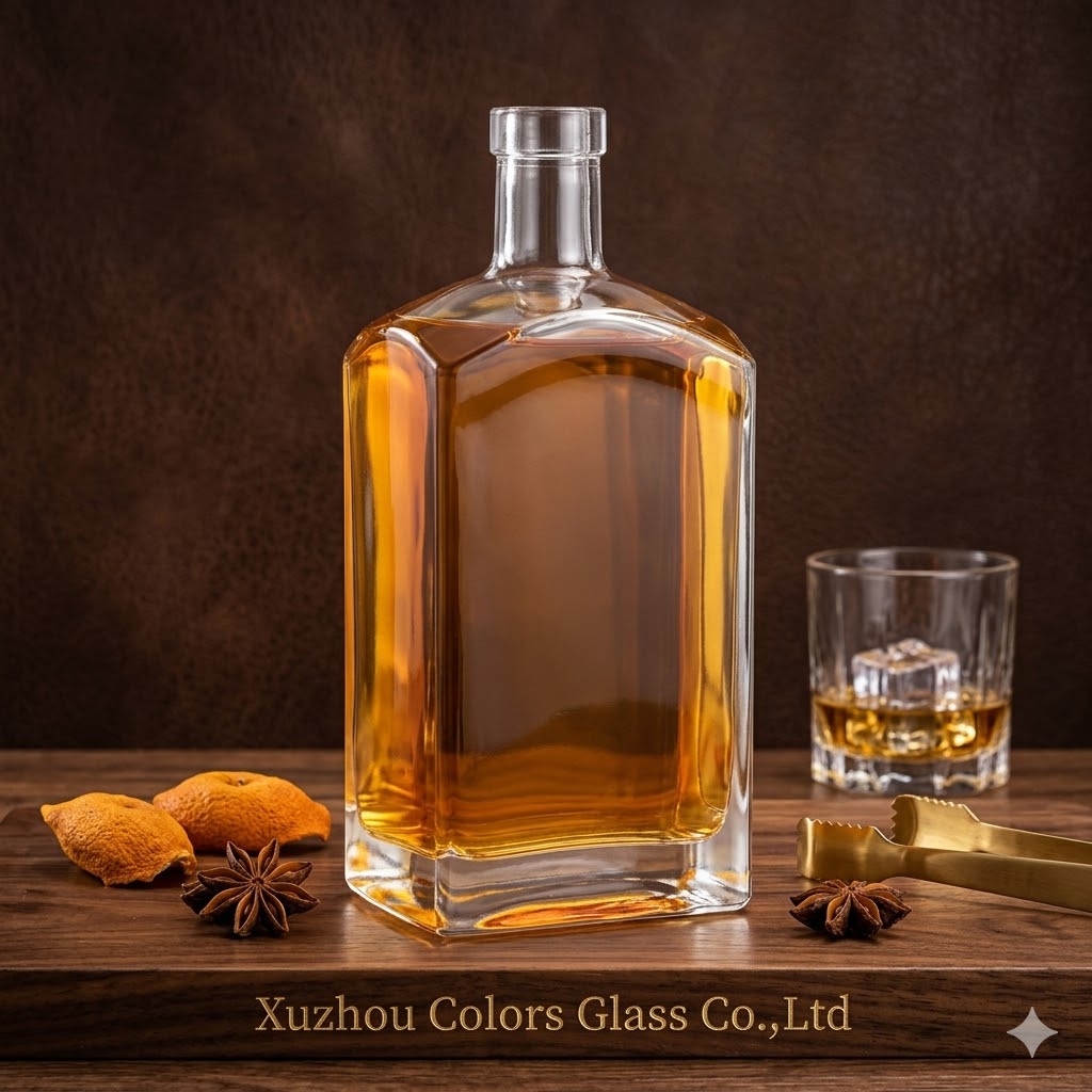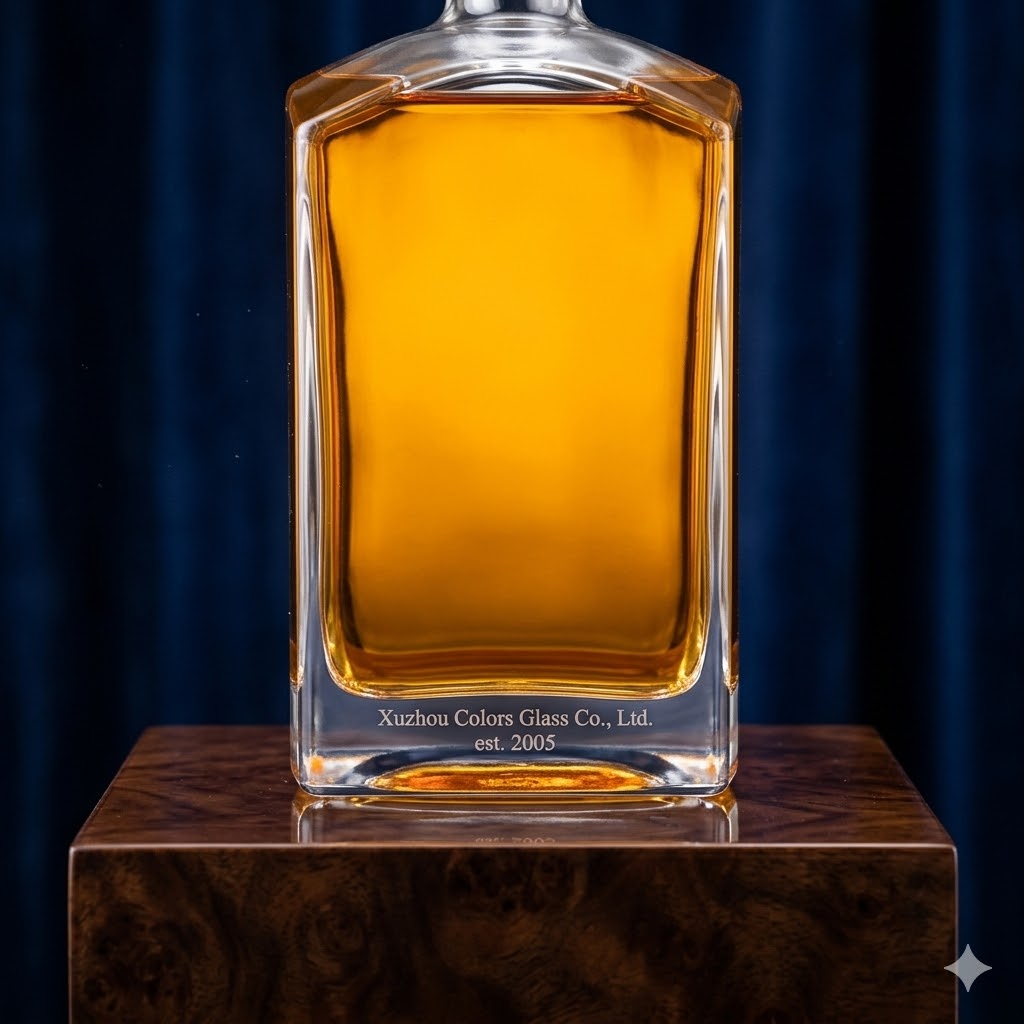This 750ml square glass liquor bottle is designed for modern spirits packaging, offering a clean geometric shape that enhances brand visibility.