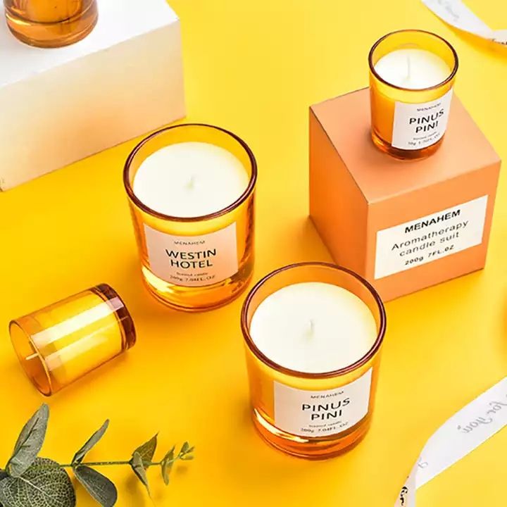 Wholesale Custom 10oz Multi Color clear empty luxury orange Candle Jar with Lid |