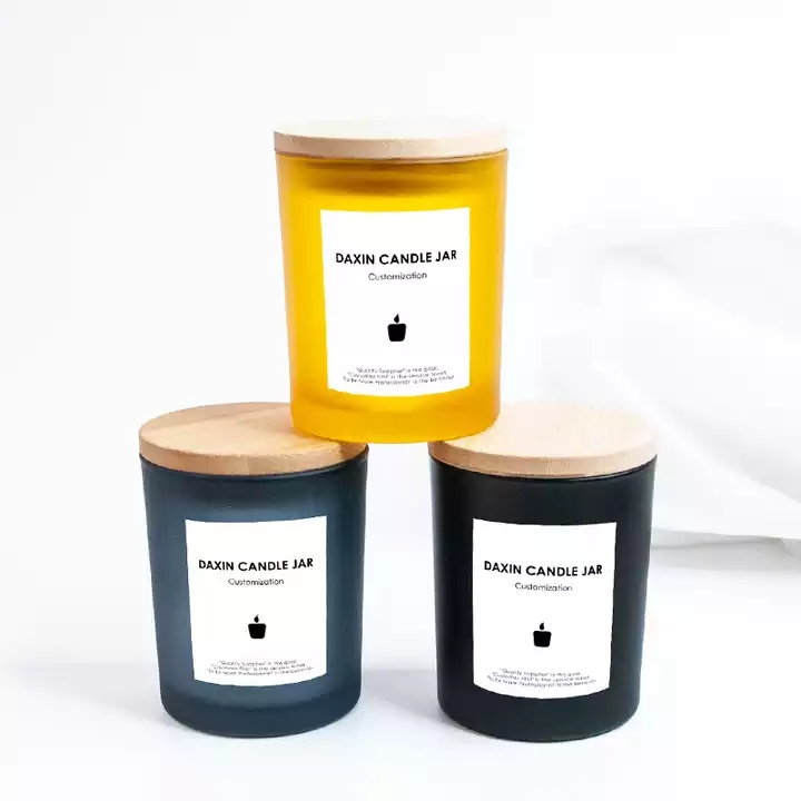 Wholesale customized 10 Ounce frosted black luxury empty glass candle jar with cover |